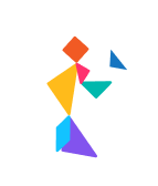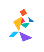 The colors are inspired by the tangram puzzle: green represents the amount to be received, while orange signifies the amount owed to others.